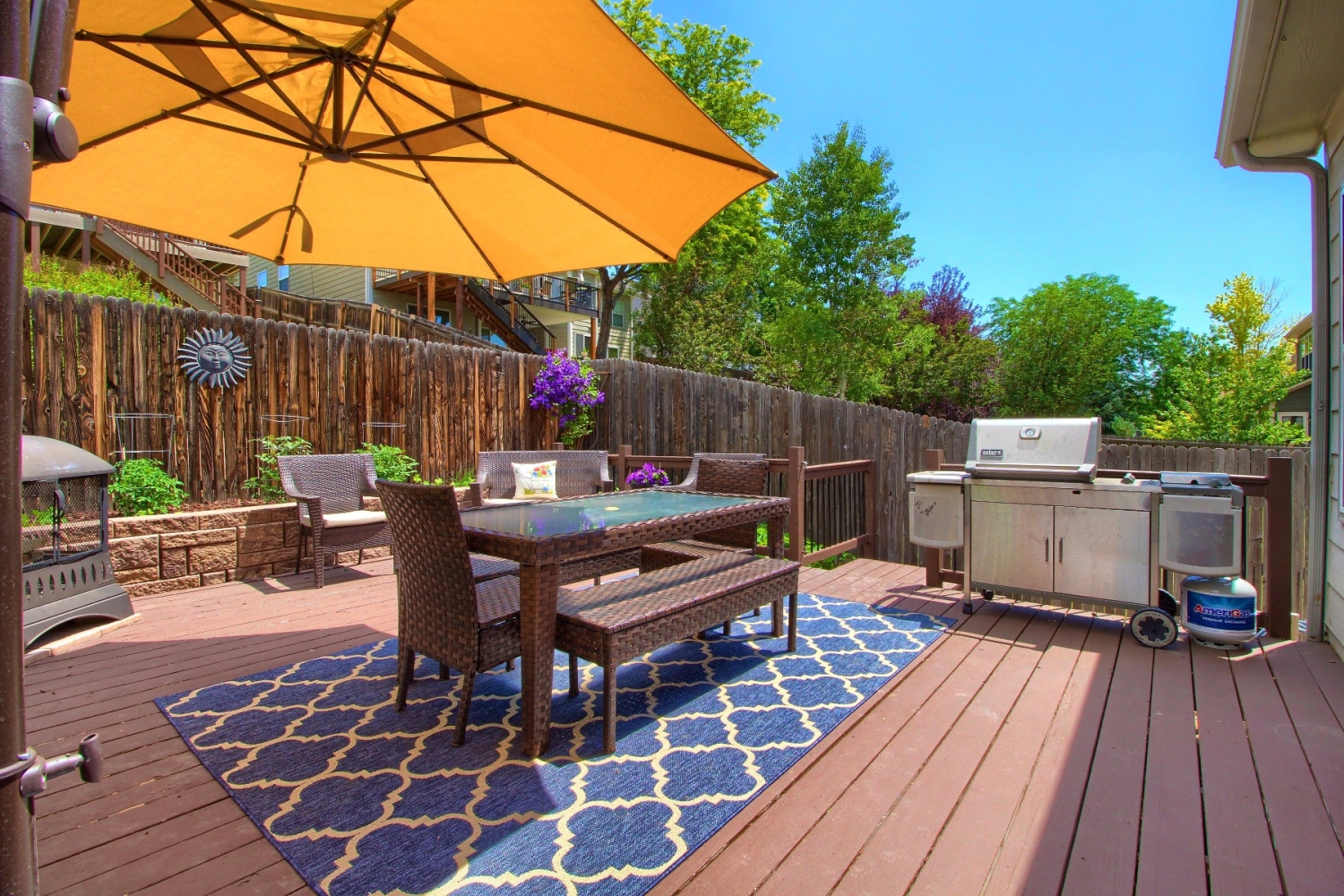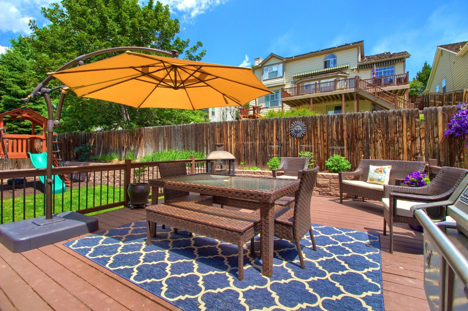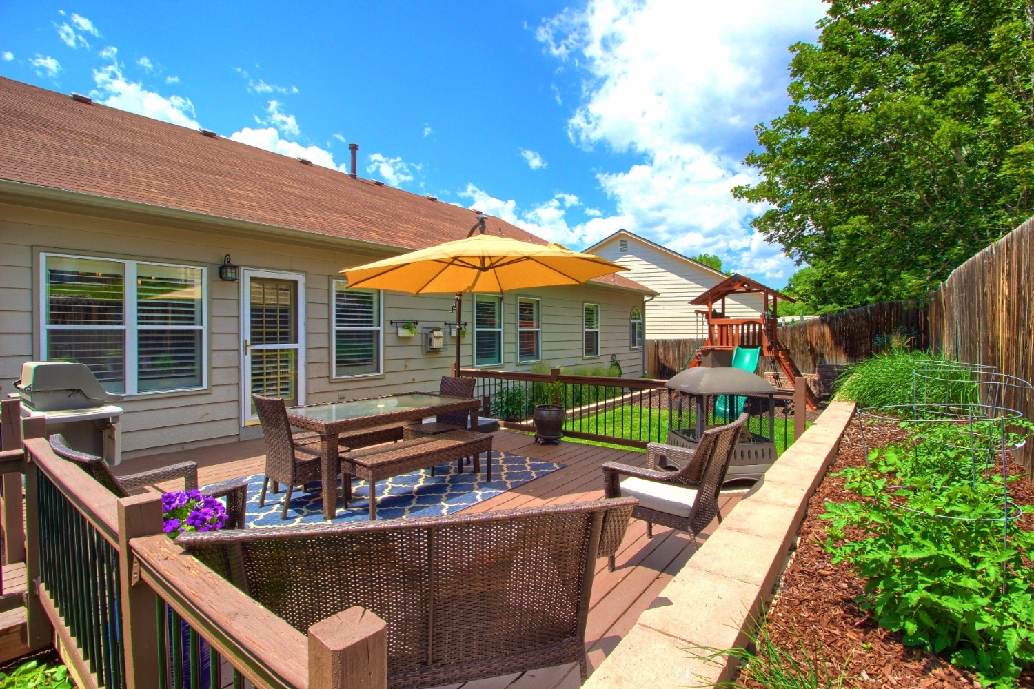 Deck, Fence, Front Porch, Professional Landscaping, Sprinkler System, Yard